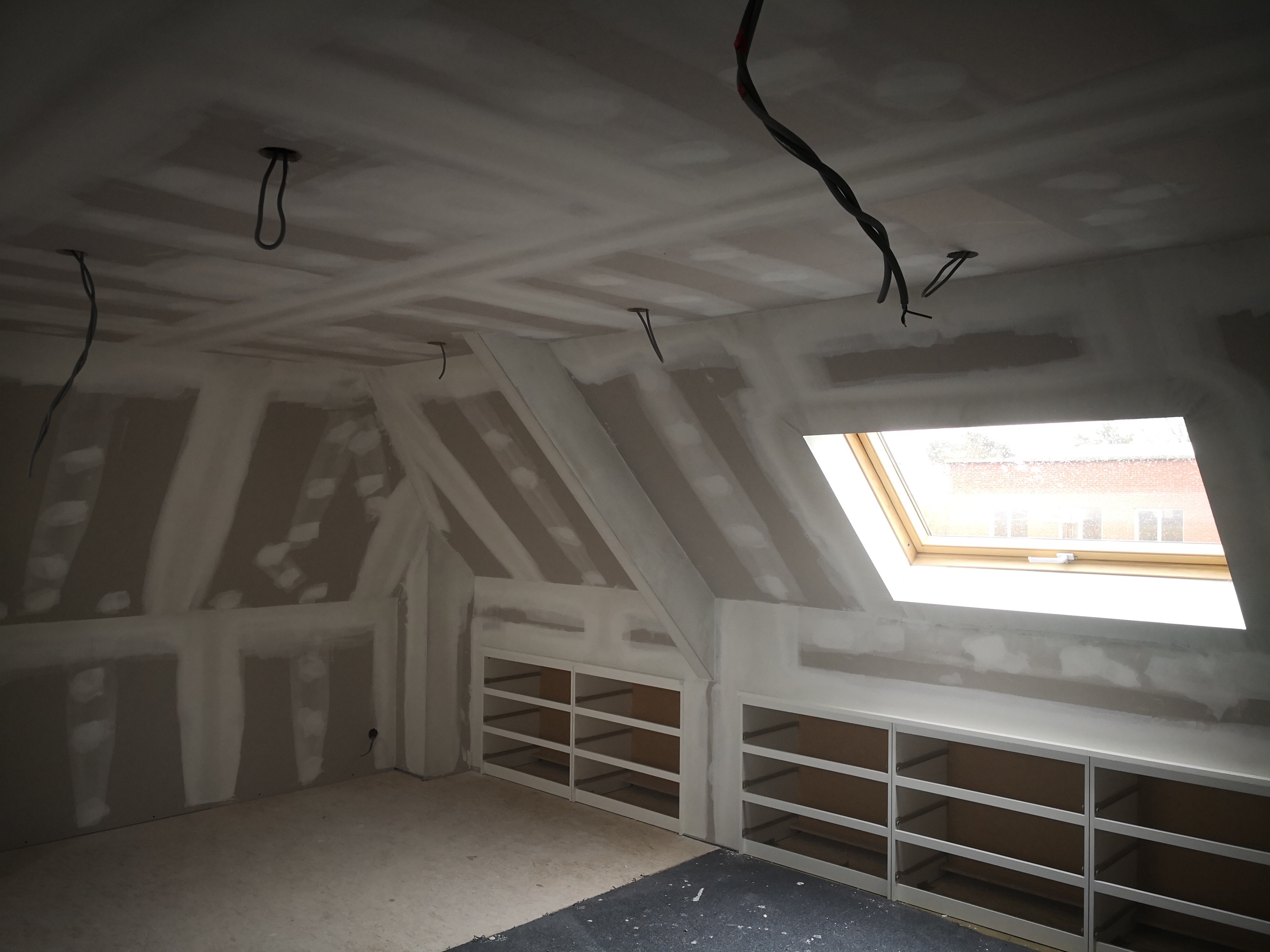 We plaatsen niet alleen gyprocwanden en plafonds, maar ook dakramen voor extra licht en ventilatie. Van isolatie tot schilderklare afwerking: wij nemen het volledige project in handen.
